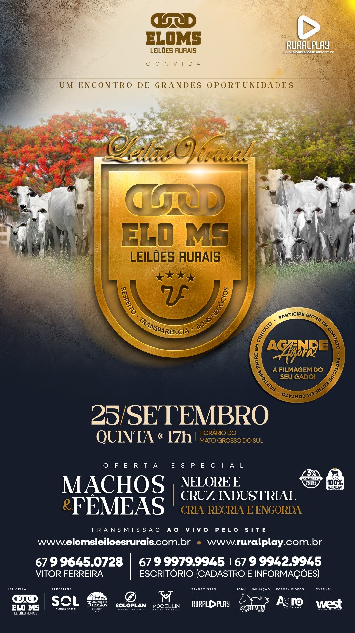 Dia 25 de Setembro - Quinta Feira - 120° Leilão Virtual Elo Ms