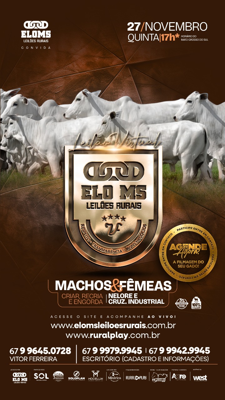 Dia 27 de Novembro - Quinta Feira - 124° Leilão Virtual Elo Ms