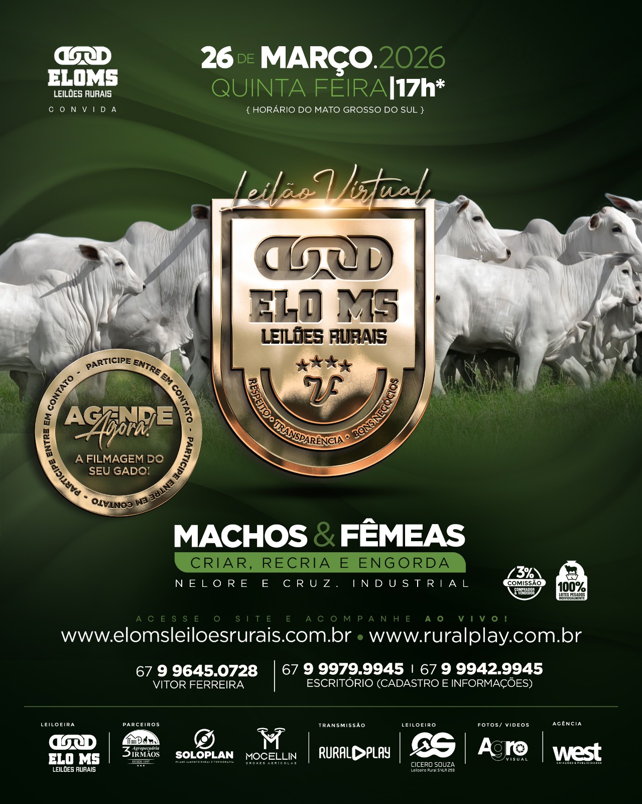 A Elo Ms Convida a todos os Pecuaristas !!! Dia 26 de Março - Quinta Feira - 129° Leilão Virtual Elo Ms