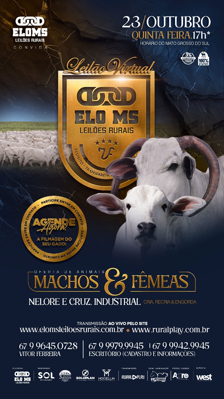 Dia 23 de Outubro - Quinta Feira - 122° Leilão Virtual Elo Ms